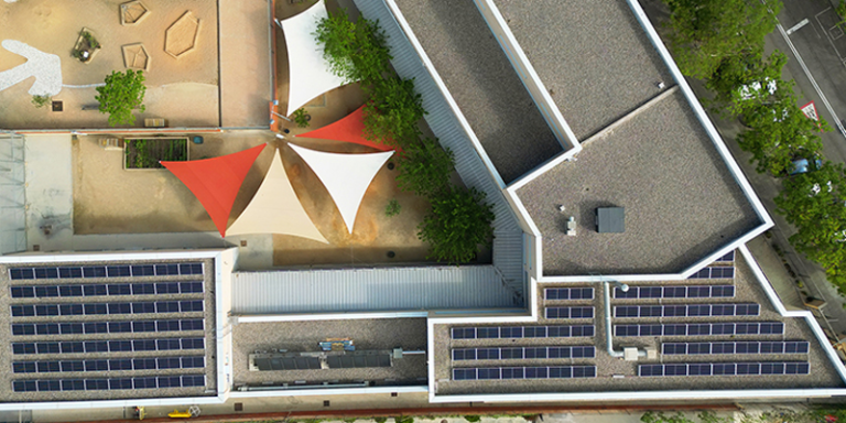 Una instalación con paneles solares puede compartir energía virtualmente. Para ello, se utiliza un sistema que, en este caso, permite al ayuntamiento recibir un beneficio económico por la energía generada en la Escuela Antoni Gaudí que el centro educativo no consume, y destinarla a abaratar el consumo de otro equipamiento, como Can Jordana.